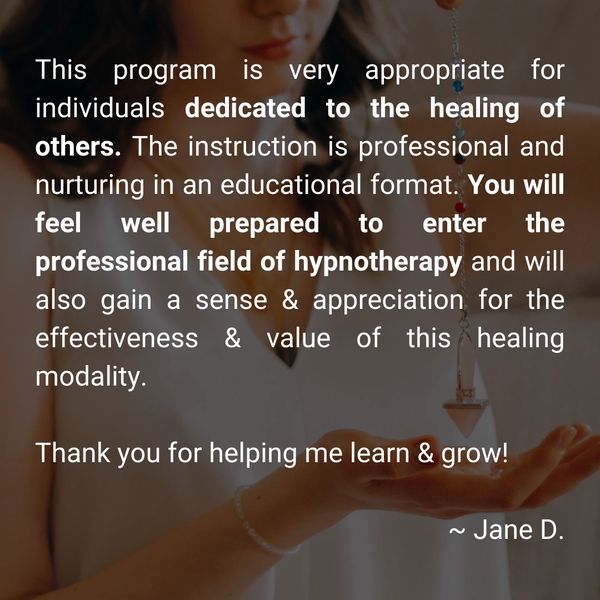 Designed to prepare individuals who are interested in helping themselves and others in a rewarding career as a Professional Certified Hypnotist/Hypnotherapist.